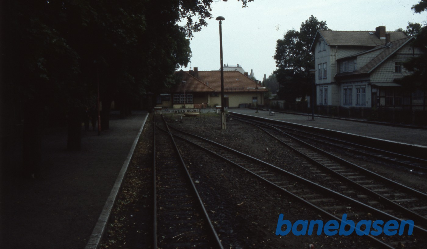Motiv:De 2 HSB perronspor, HSB stationsbygningen for enden