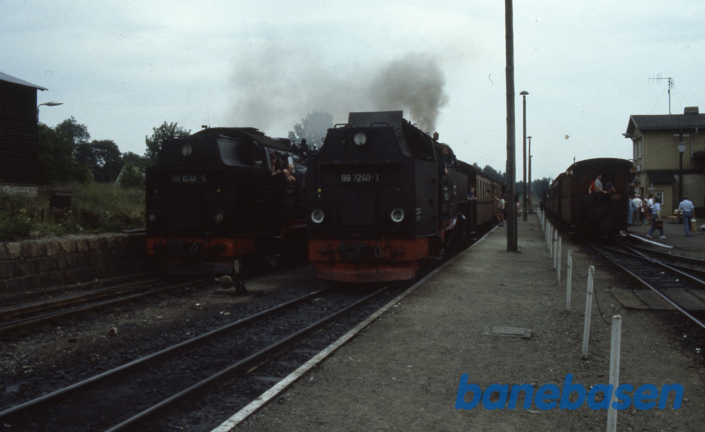 Motiv:2 damplokomotiver, det ene for krydsende tog