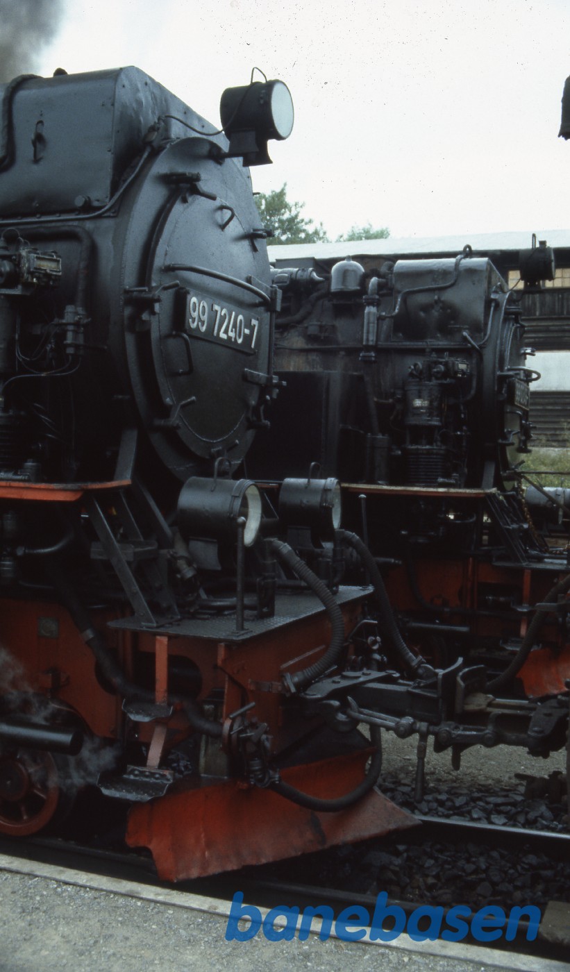 Motiv:2 damplokomotiver, det ene for krydsende tog