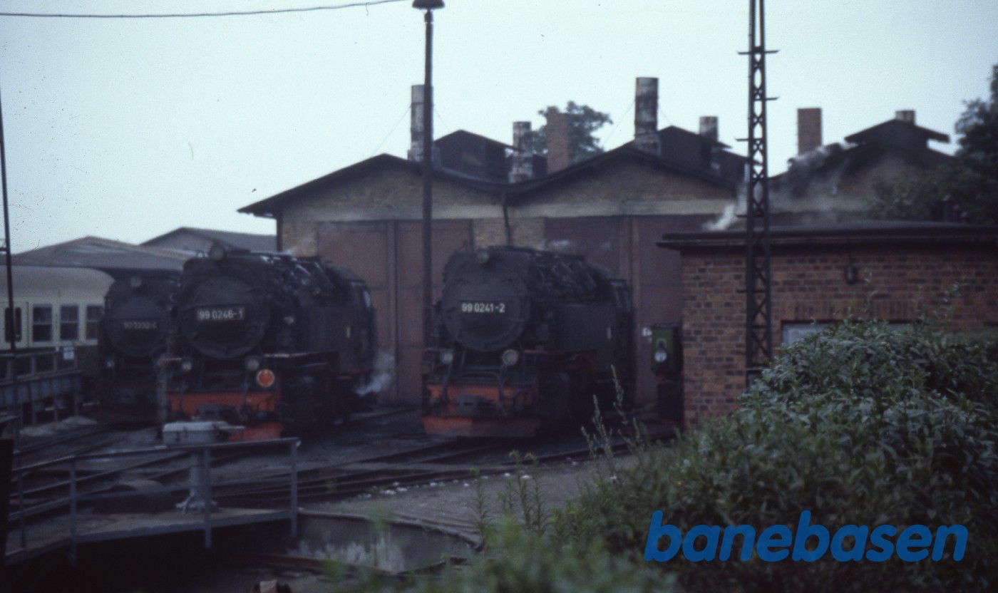 3 damplokomotiver på maskindepotet