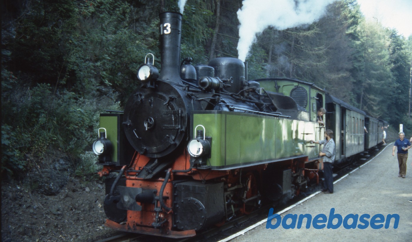Motiv:Damptoget er ankommet til Steinerne Renne, hvor det skal krydse med modkørende persontog