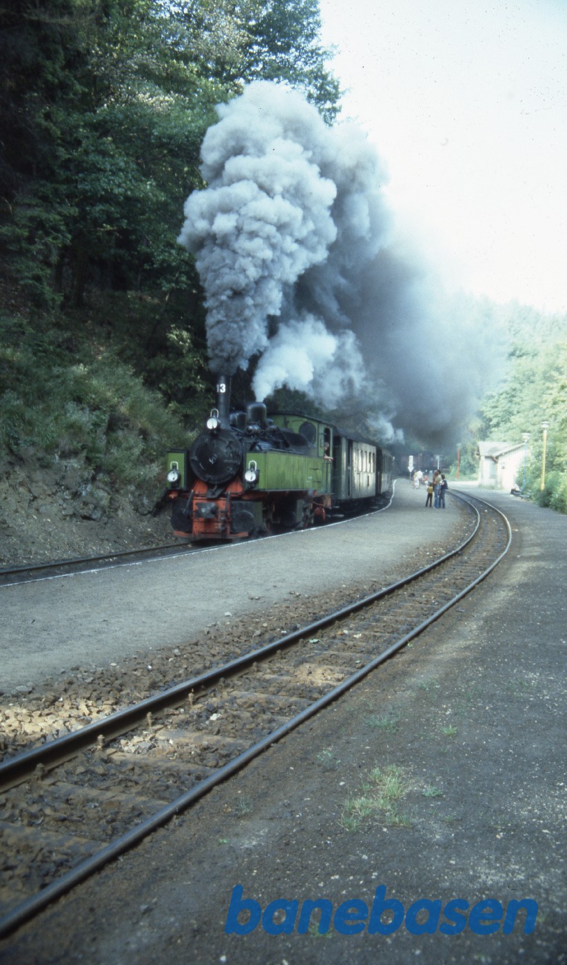 Motiv:Damptoget er ankommet til Steinerne Renne, hvor det skal krydse med modkørende persontog