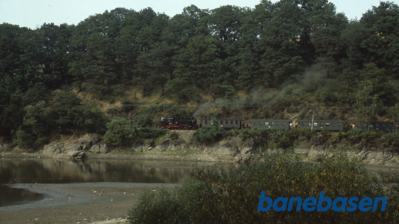 Motiv:Persontoget kører i en smal dal og nærmer sig Rabenau