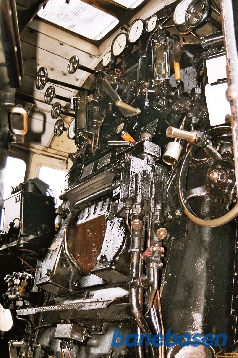 Motiv:Førerpladsen på et af de store damplokomotiver