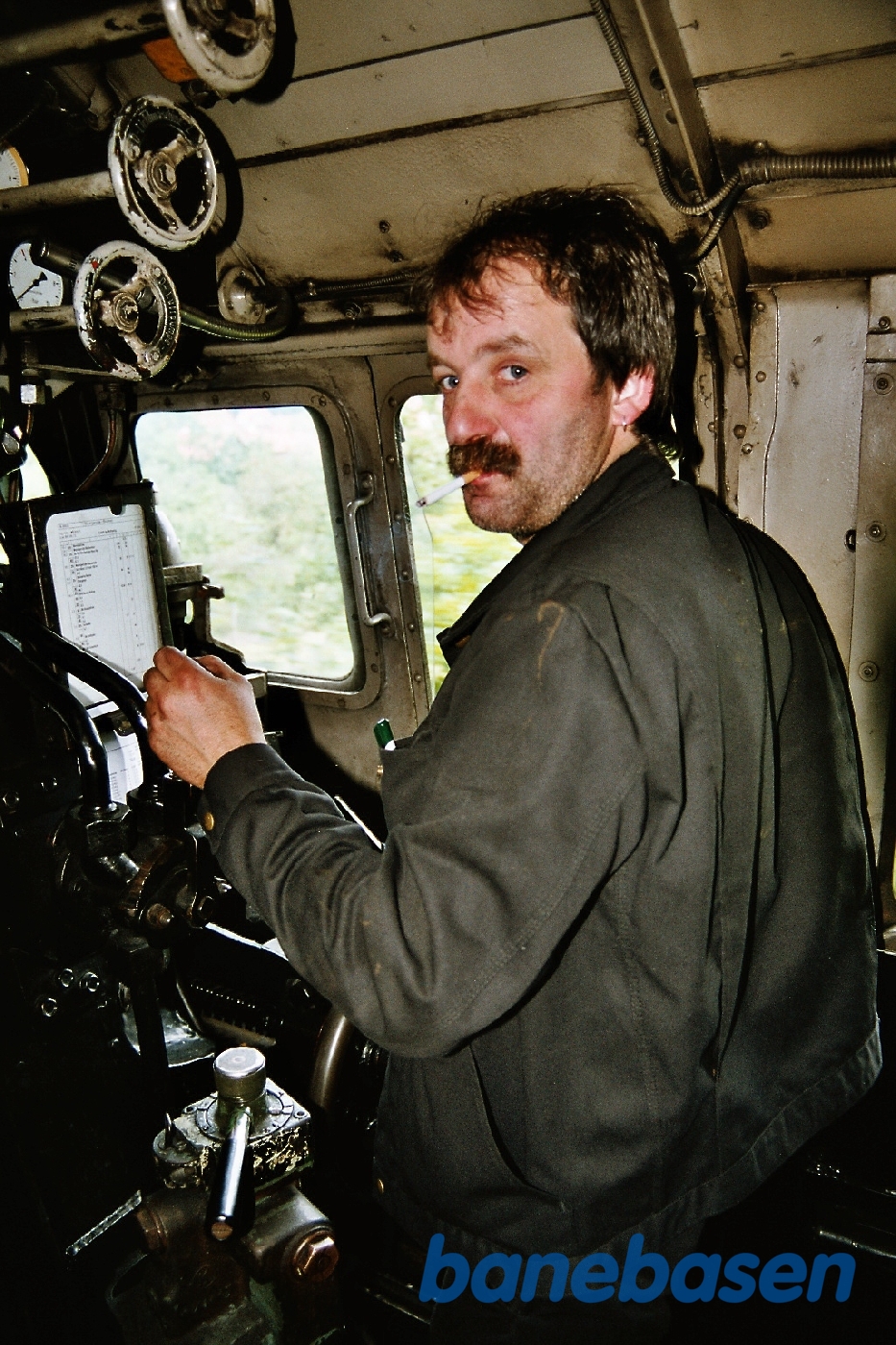 Foto af lokomotivføreren på førerpladsen