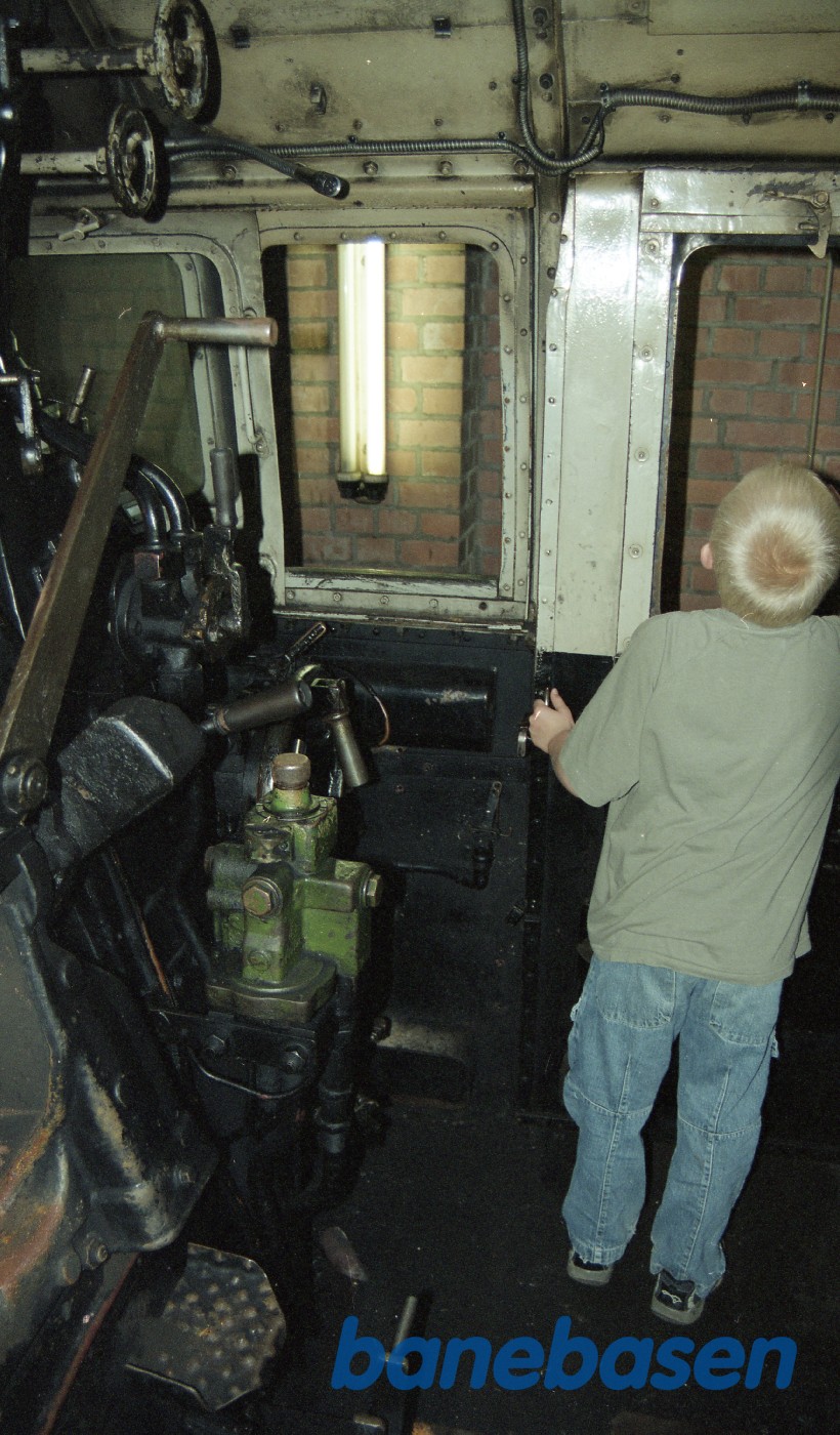 Motiv:Førerrummet på et damplokomotiv i et værksted