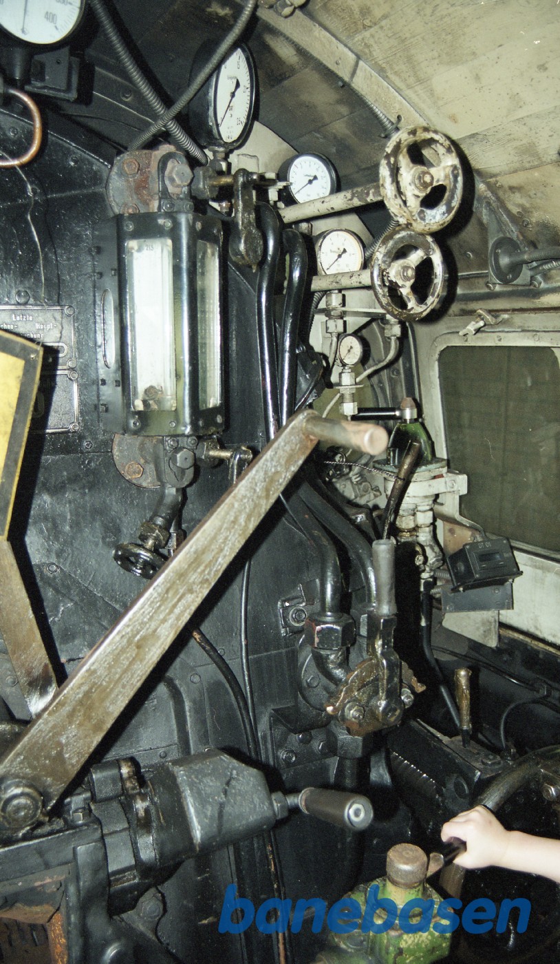 Motiv:Førerrummet på et damplokomotiv i et værksted