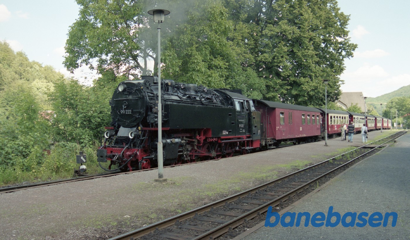 Motiv:Damptoget fra Nordhausen kører ind på stationen og fortsætter nordpå