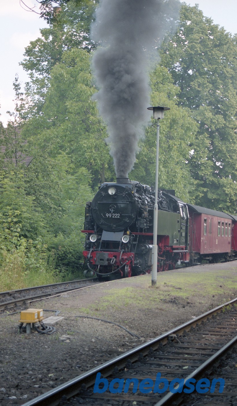 Motiv:Damptoget fra Nordhausen kører ind på stationen og fortsætter nordpå