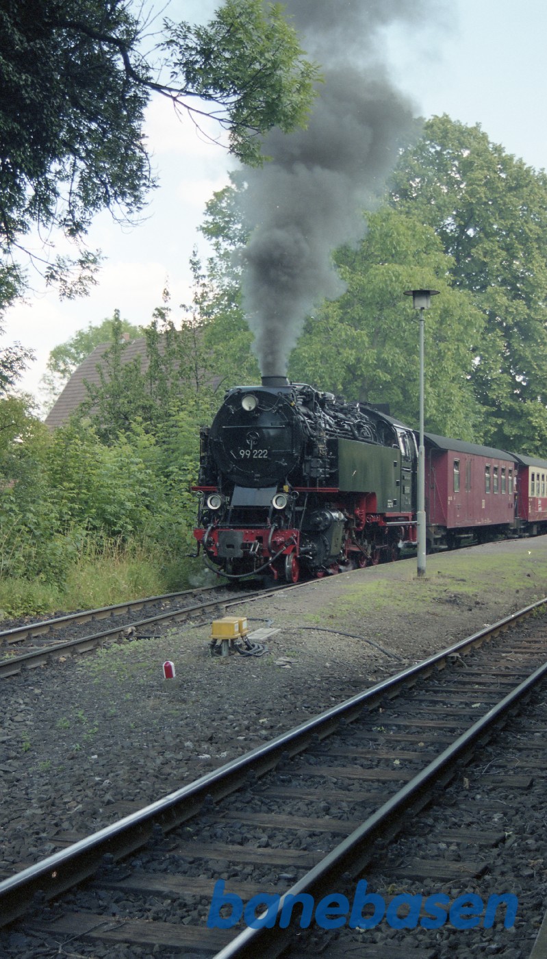 Motiv:Damptoget fra Nordhausen kører ind på stationen og fortsætter nordpå