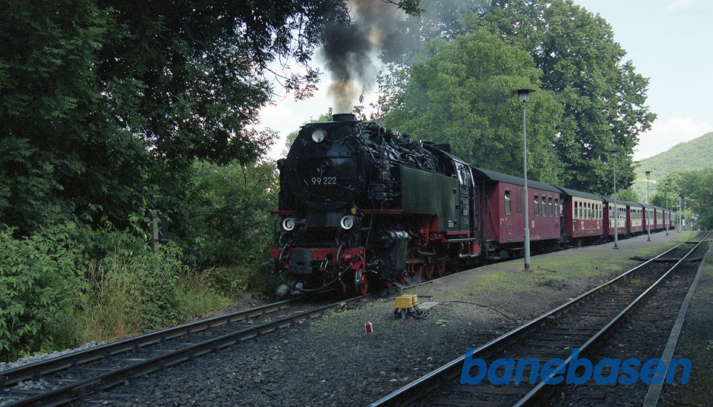 Motiv:Damptoget fra Nordhausen kører ind på stationen og fortsætter nordpå