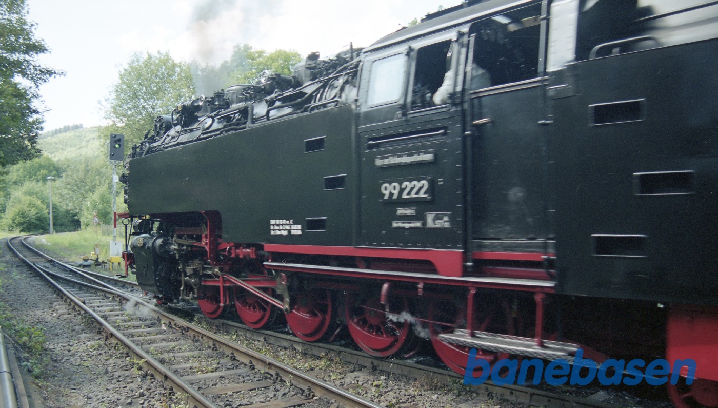Motiv:Damptoget fra Nordhausen kører ind på stationen og fortsætter nordpå
