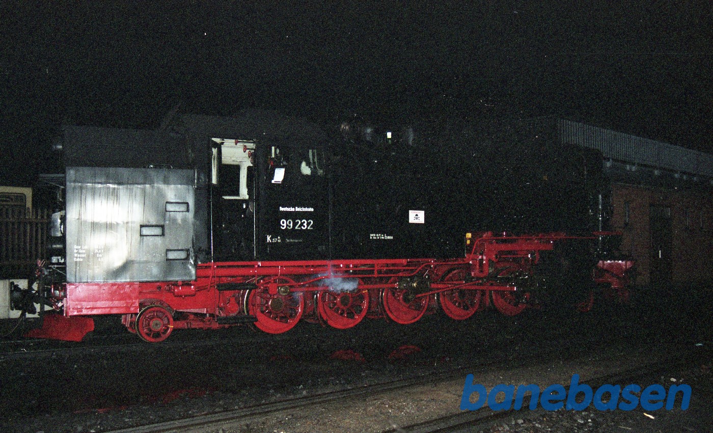 Motiv:Damplokomotiv rangerer udendor remisen om natten