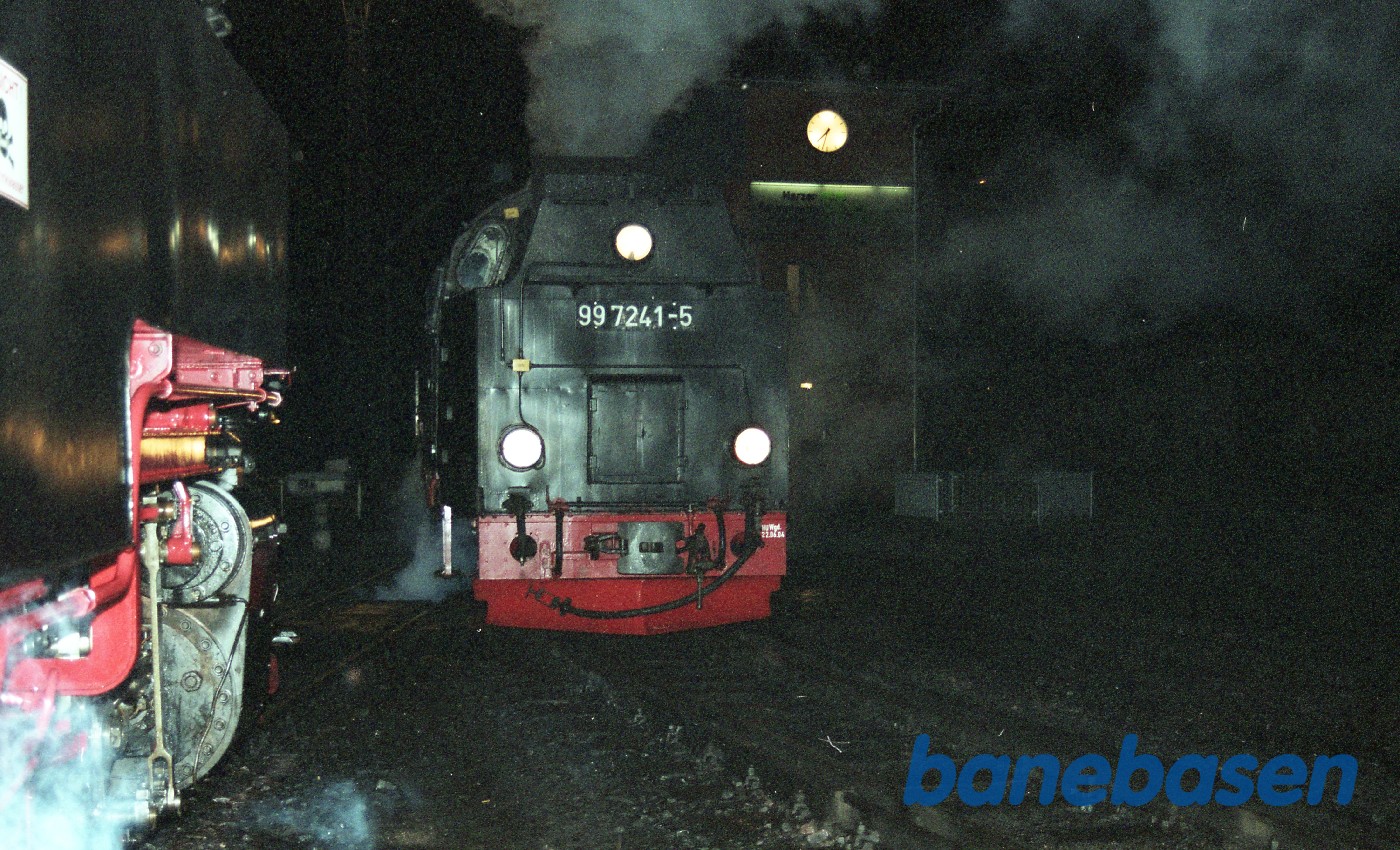 Motiv:Damplokomotiv rangerer udendor remisen om natten