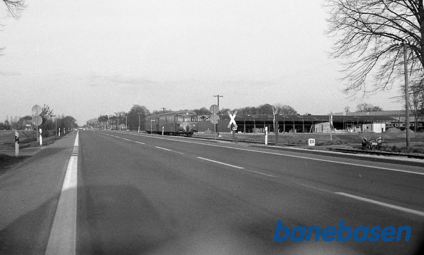 Motiv:Rheine, skinnebustog kører langs landevejen
