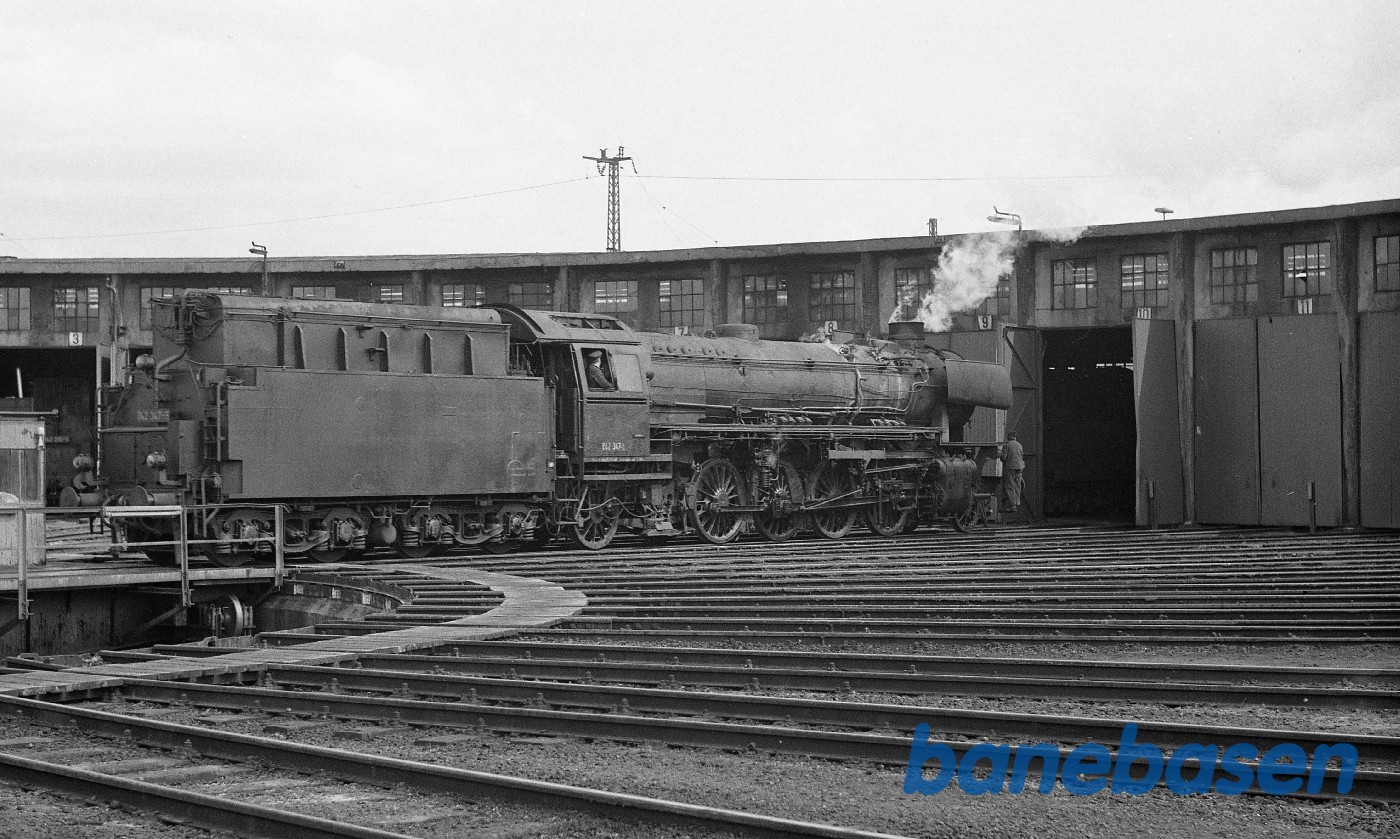 Rheine, damplokomotiv kører fra drejeskiven ind i remisen