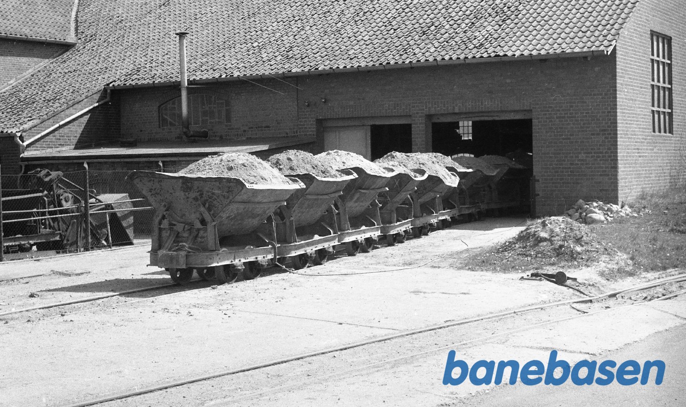 Mergelbane mellem Lübeck og Büchen. Læssede tipvogne på vej ind i fabriksbygningen