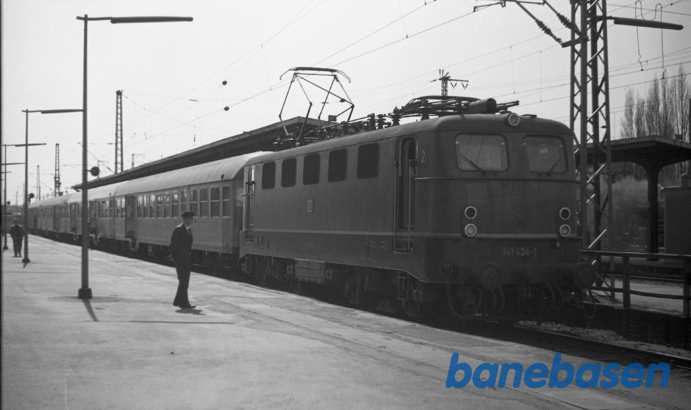 Motiv:Uelzen, elektrisk lokomotiv med persontog ved perron