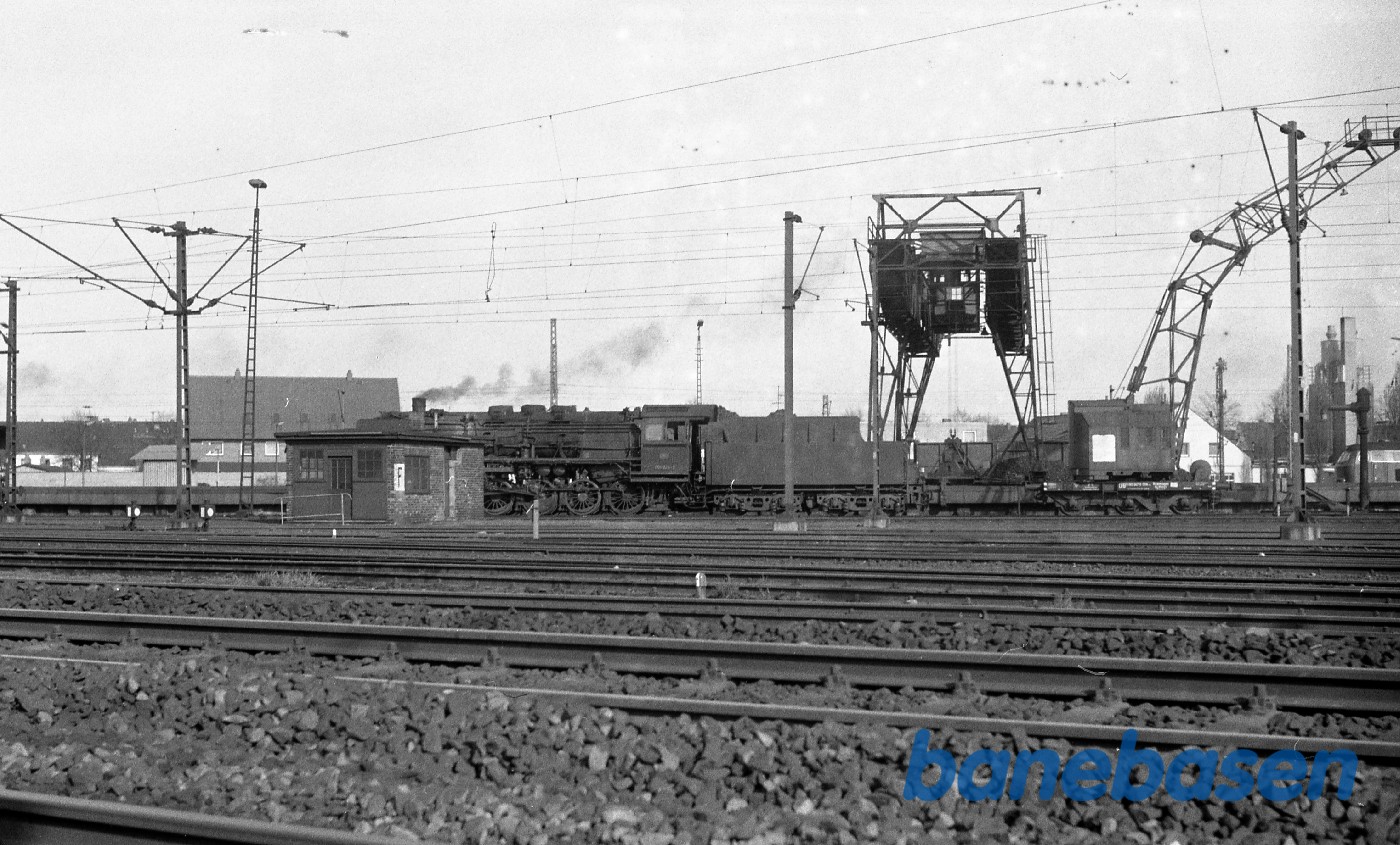 Lehrte, billede af spor, et damplokomotiv og en jernbanekørekran