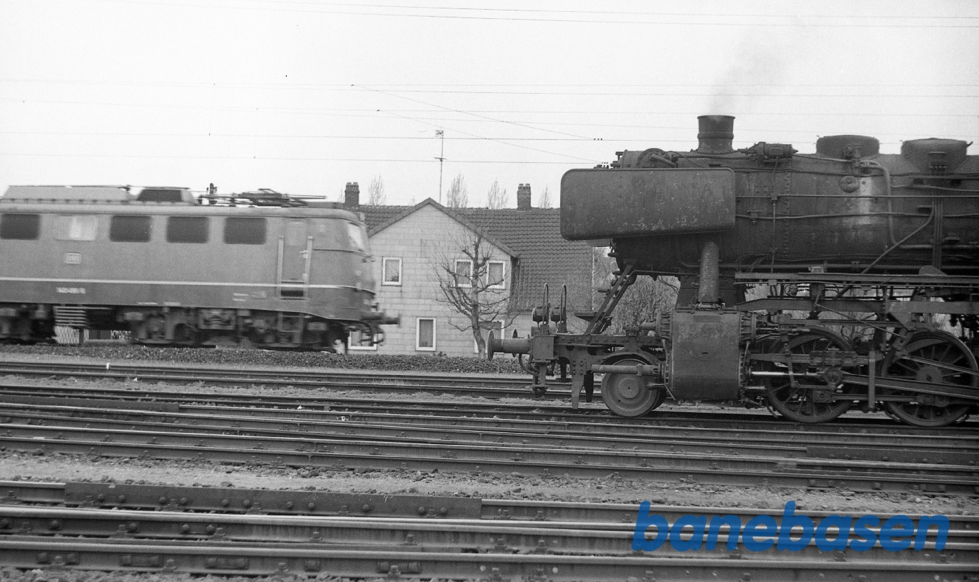 Lehrte, front af damplokomotiv og elektrisk lokomotiv i baggrunden