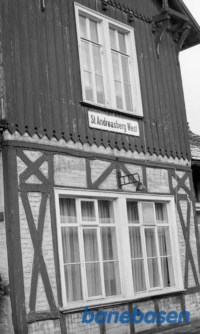 Motiv:St. Andreasberg West stationsskilt og stationsbygning