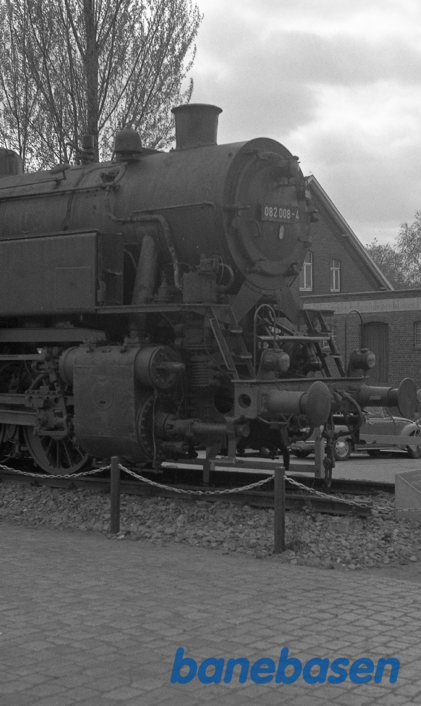 Motiv:Lingen, damplokomotiv hensat som udstillings genstand