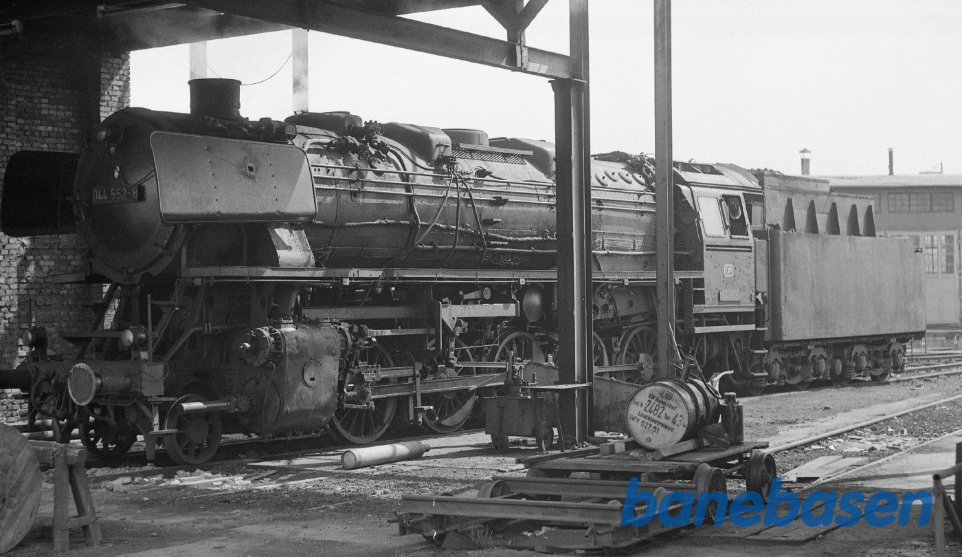 Motiv:BW Herzberg, damplokomotiv holder udenfor remisen