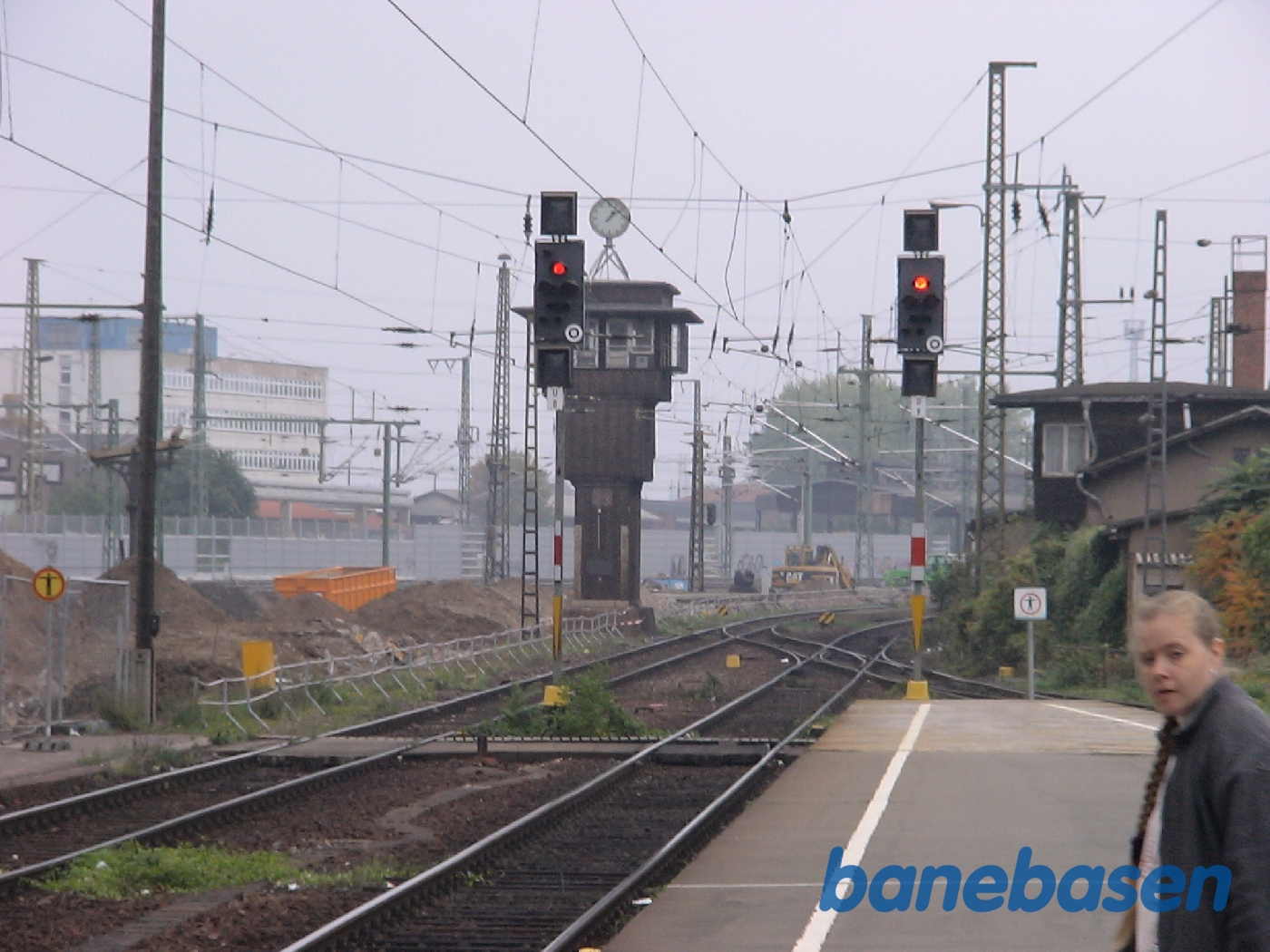 Et vue ud over sporanlægget på stationen med signaler og kommandopost