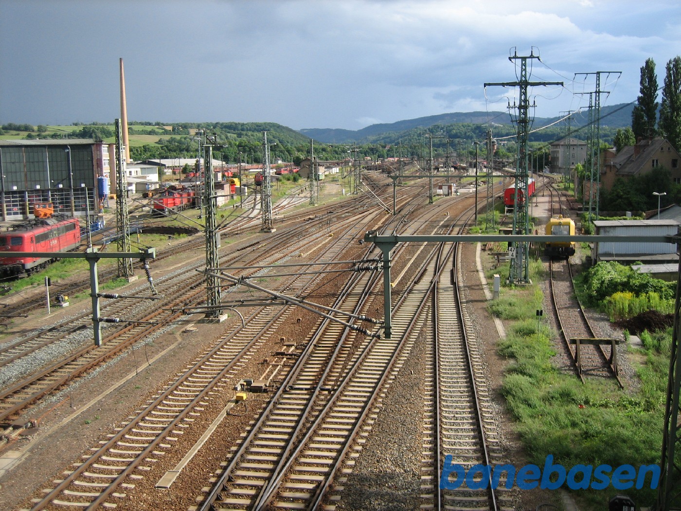 Motiv:Udsigt over maskindepotet, set oppe fra vejbroen