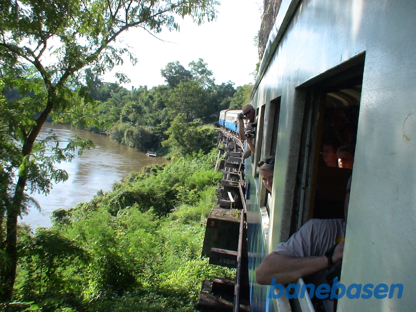 Så kører vi ud på den berømte træbro langs bjergsiden