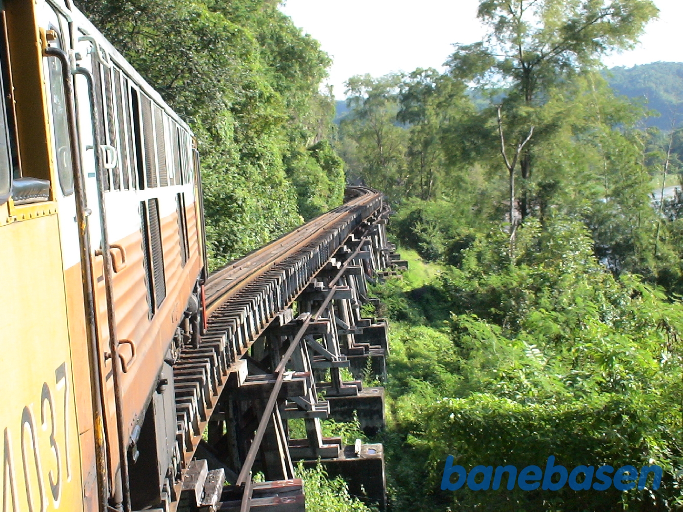 Så kører vi ud på den berømte træbro langs bjergsiden