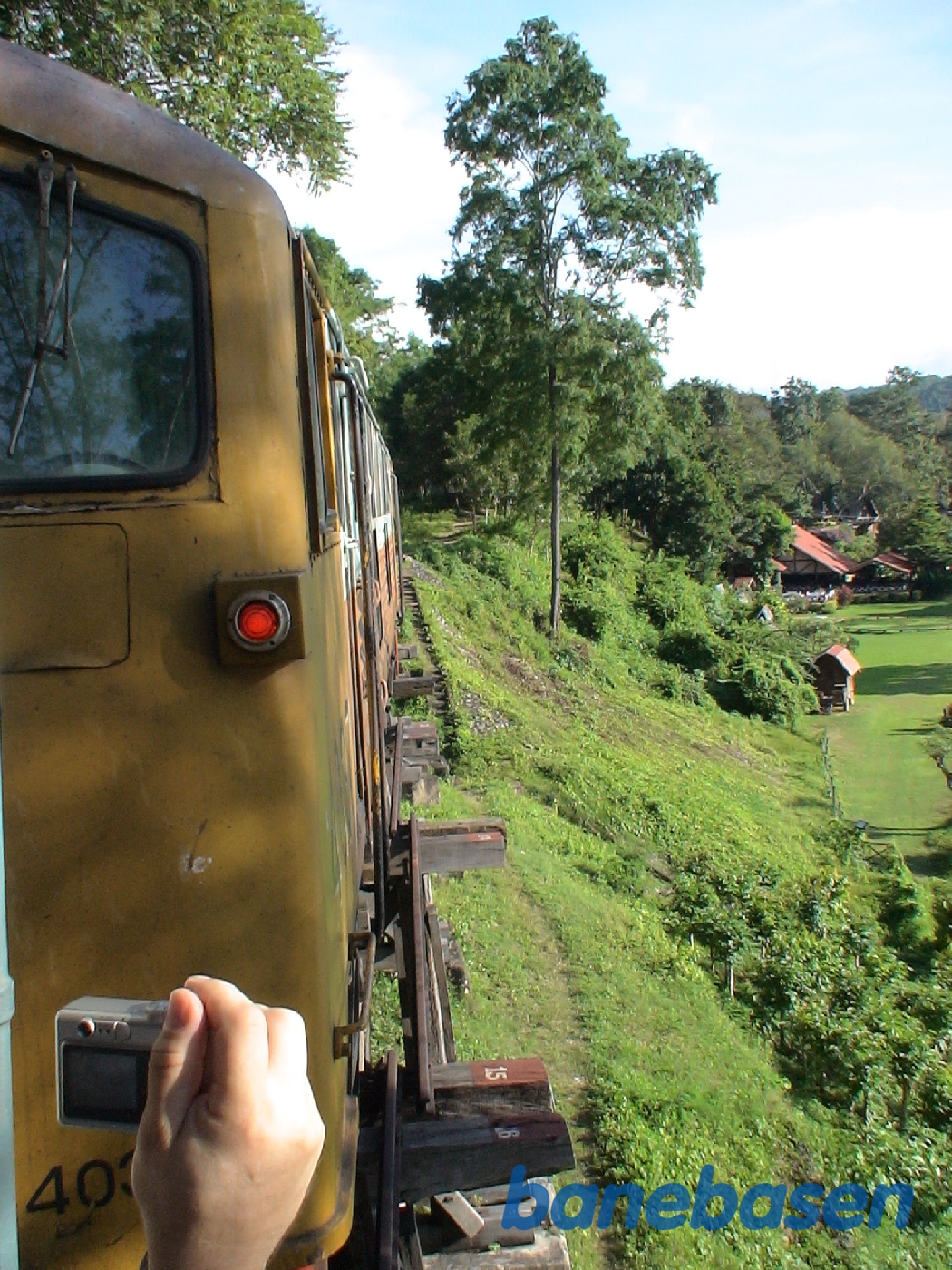 Så kører vi ud på den berømte træbro langs bjergsiden
