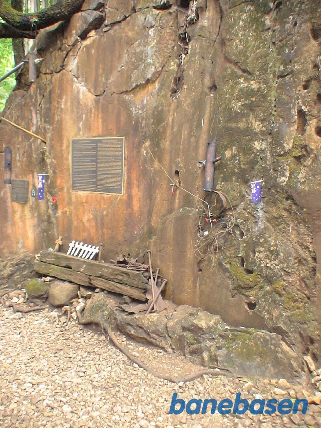 Motiv:Mindeplade, værktøj og flag til minde om de døde