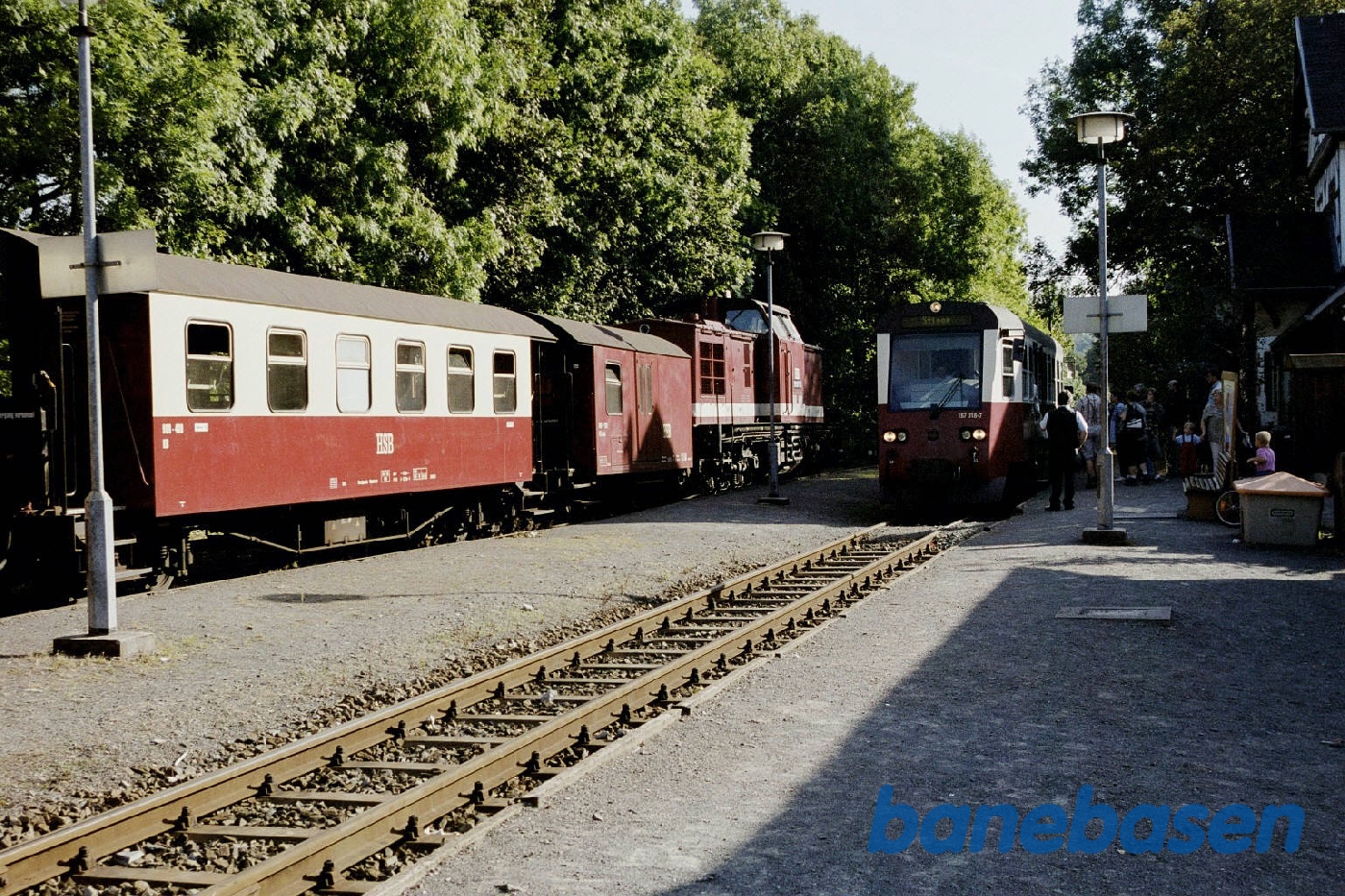 Motiv:Dieseltoget krydser med motorvogn mod Eisfelder Tammühle