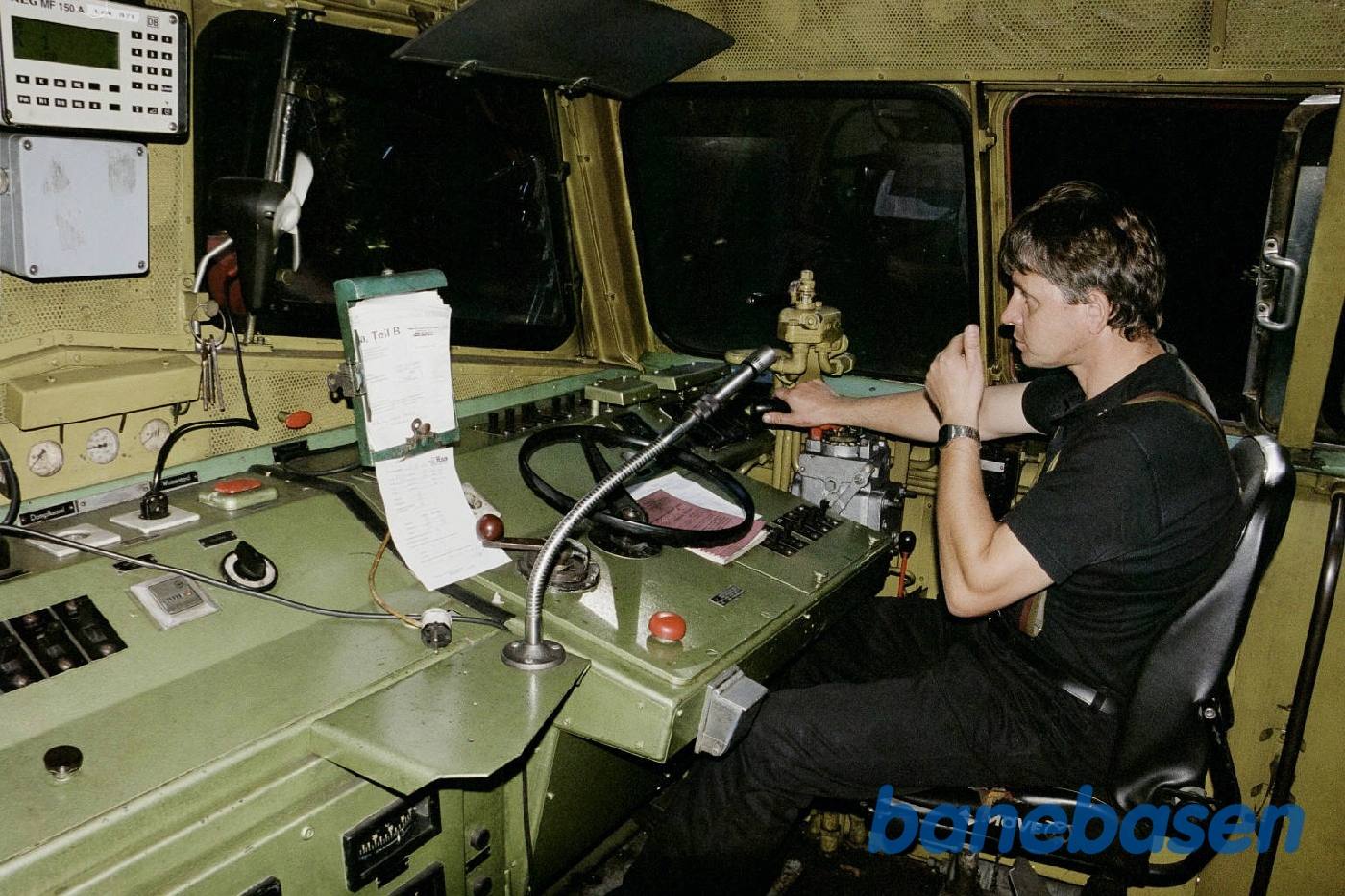 Motiv:Foto af lokomotivføreren i førerhuset
