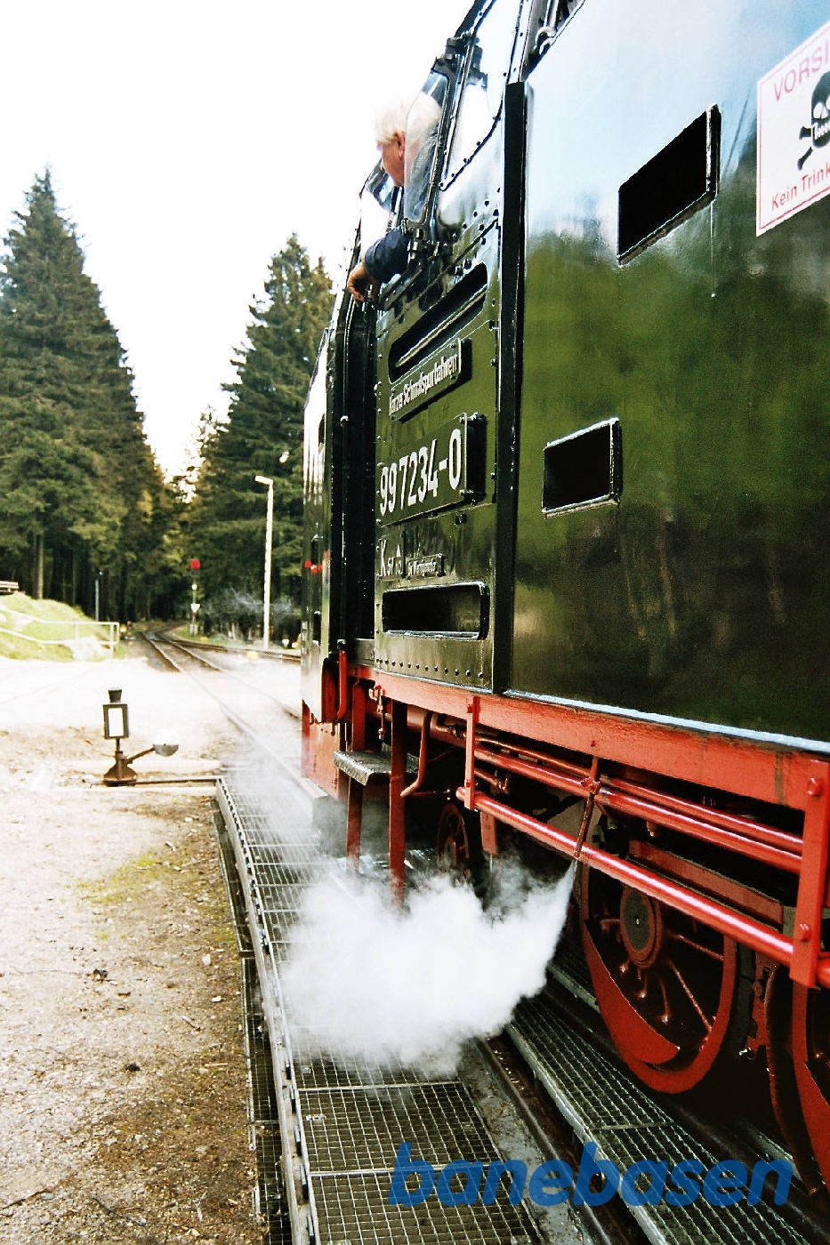 Damptog til Brocken er klar til afgang, når der er krydset med modgående tog