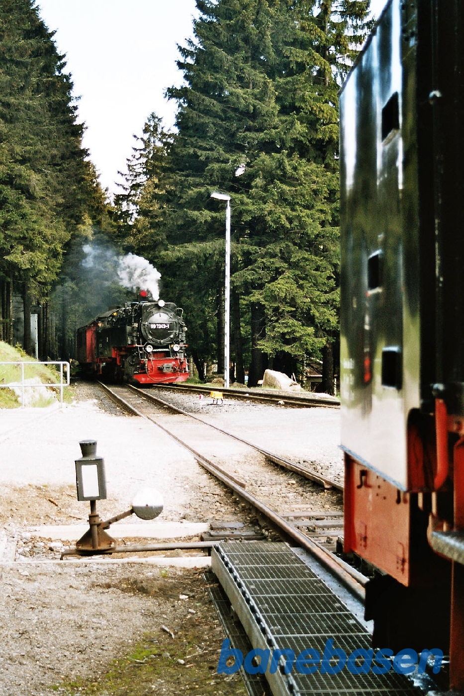 Damptog til Brocken er klar til afgang, når der er krydset med modgående tog