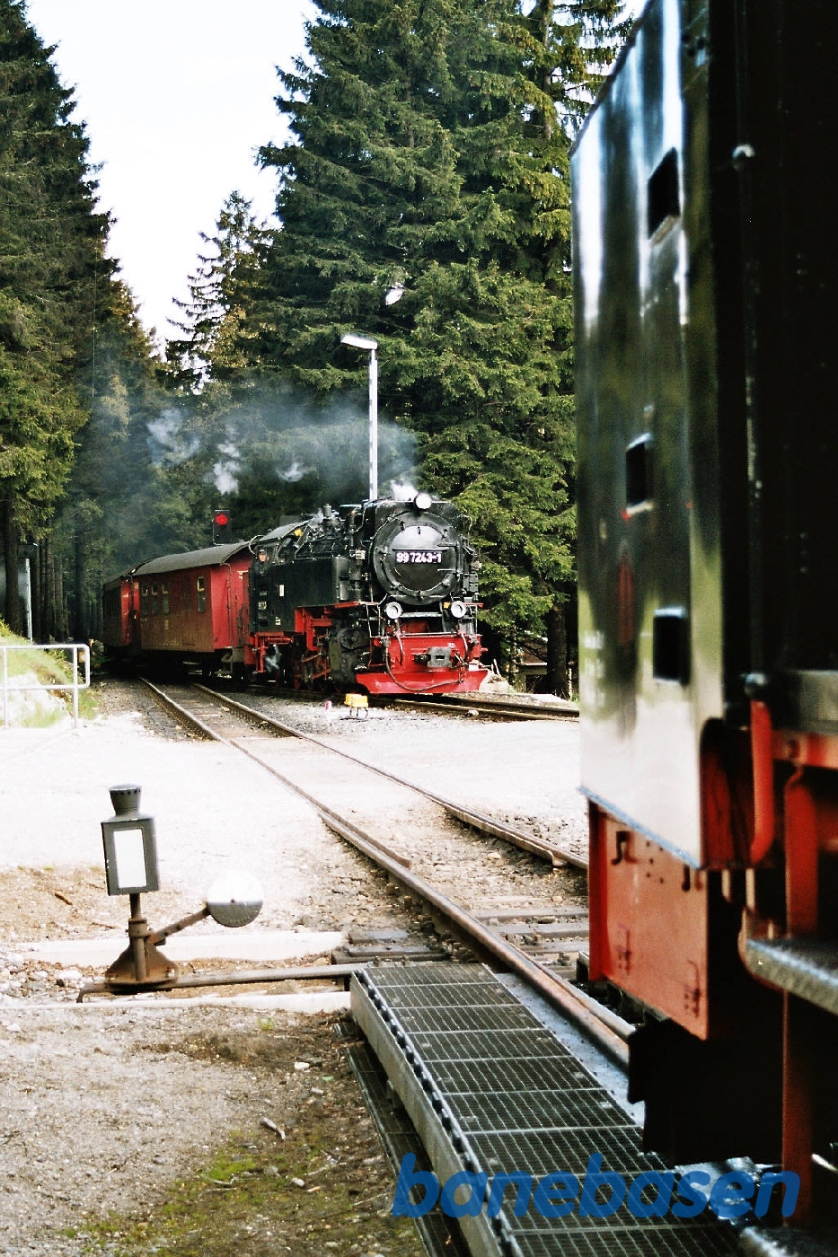 Damptog til Brocken er klar til afgang, når der er krydset med modgående tog