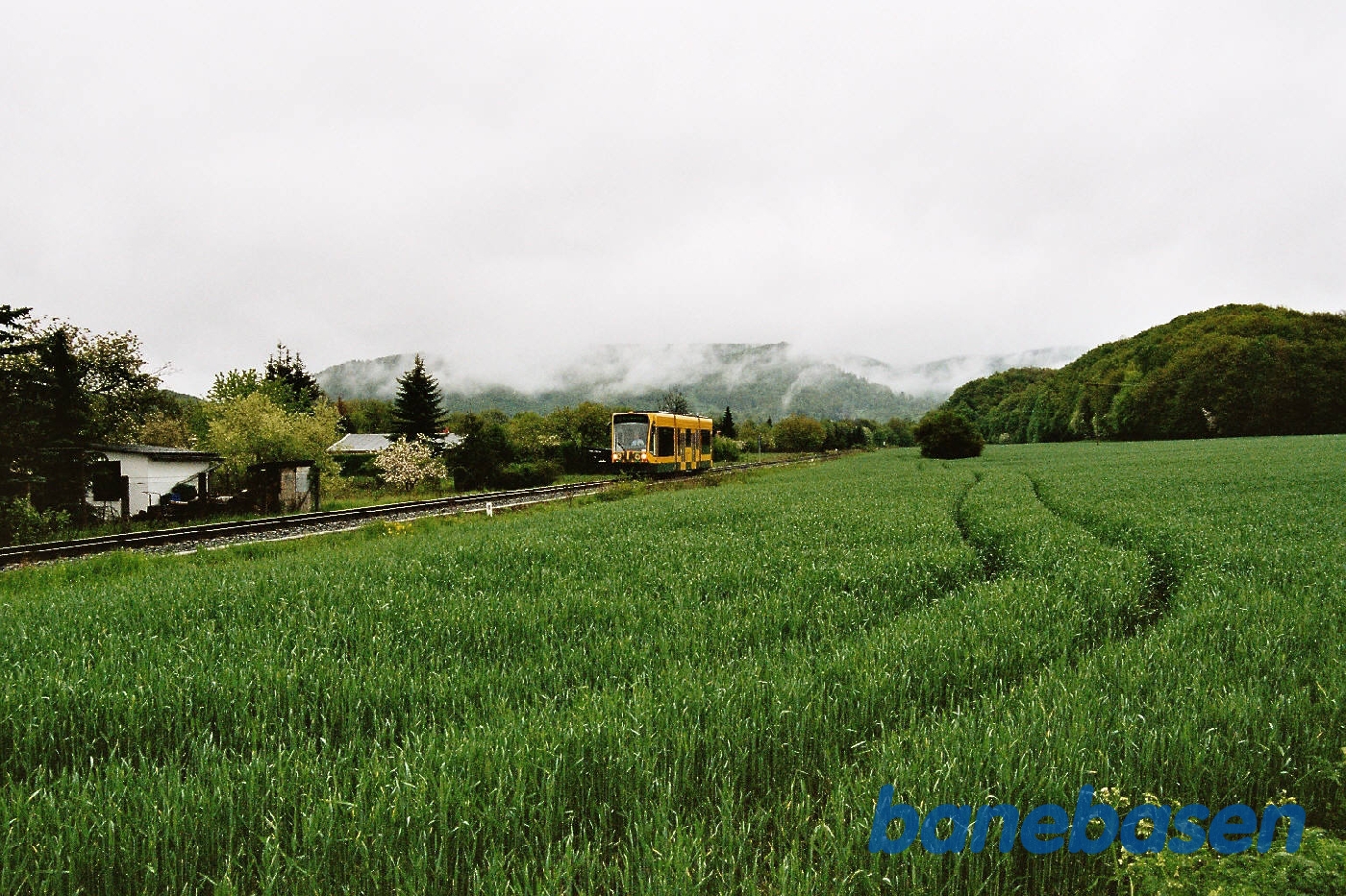 Sporvogn lige nord for Nordhausen. Harzen bjergene ses i baggrunden