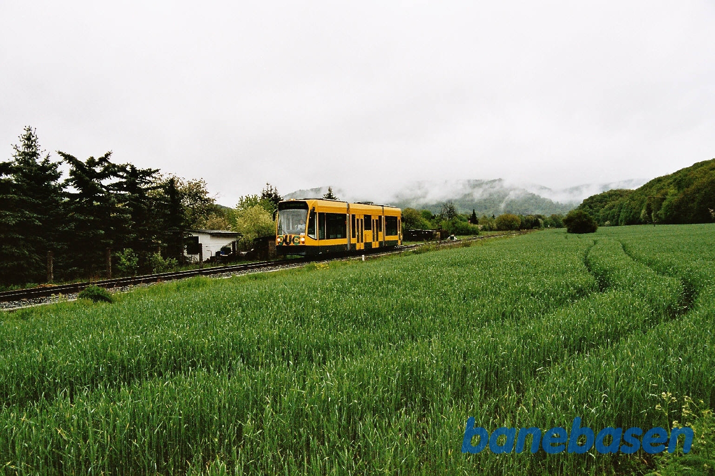 Sporvogn lige nord for Nordhausen. Harzen bjergene ses i baggrunden