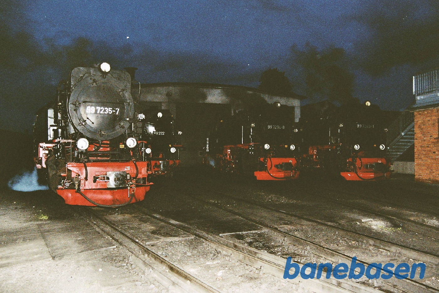 Motiv:4 damplokomotiver foran remisen