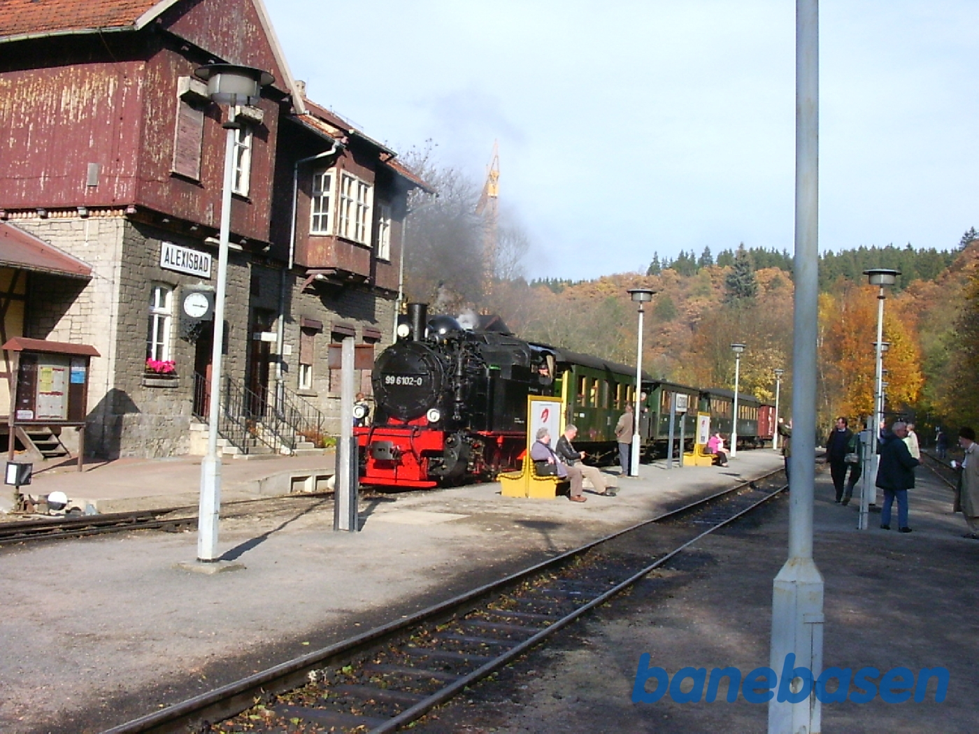 Motiv:Damptoget holder ved perron, klar til at køre til Hasselfelde