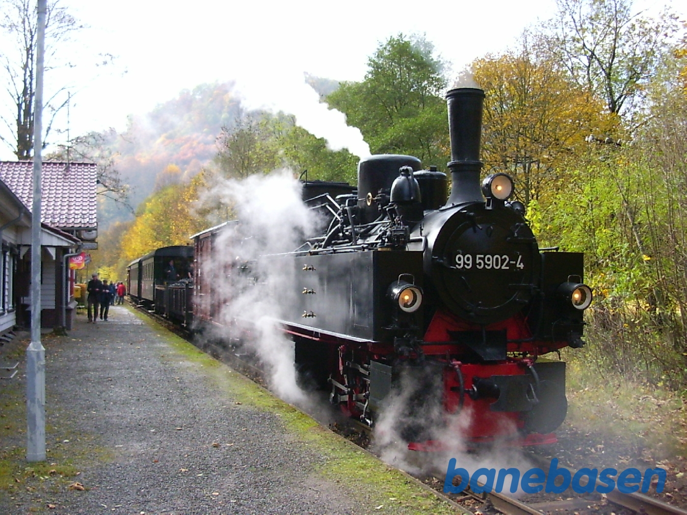 Damptoget ved perron på vej mod Eisfelder Talmühle