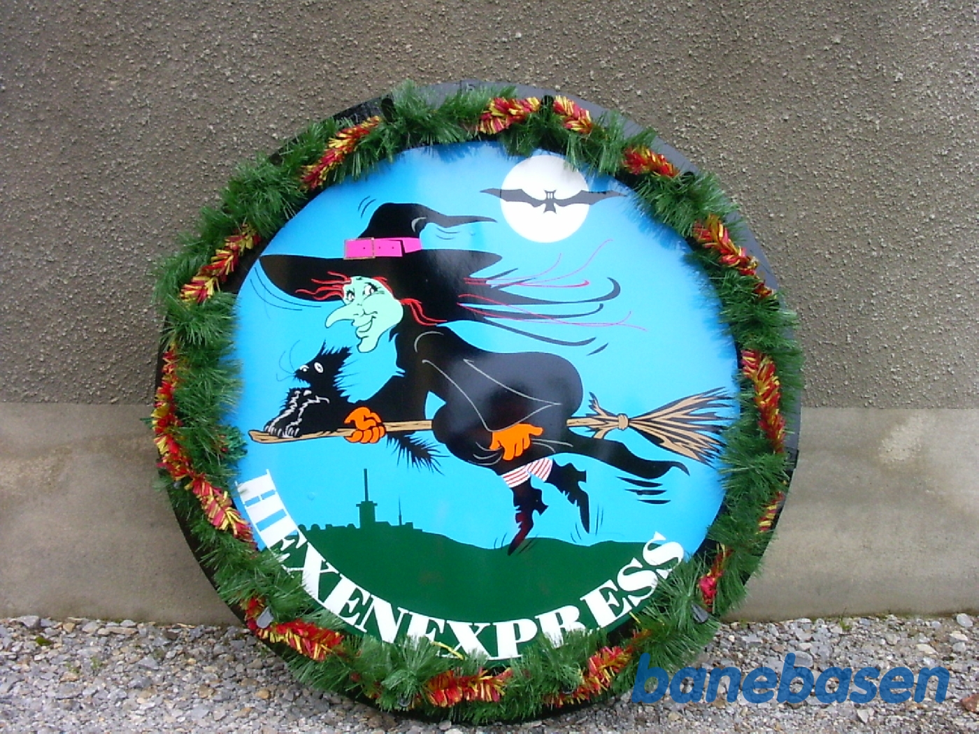 Motiv:Det runde skjold med heksen, der skal hænges på lokomotivet
