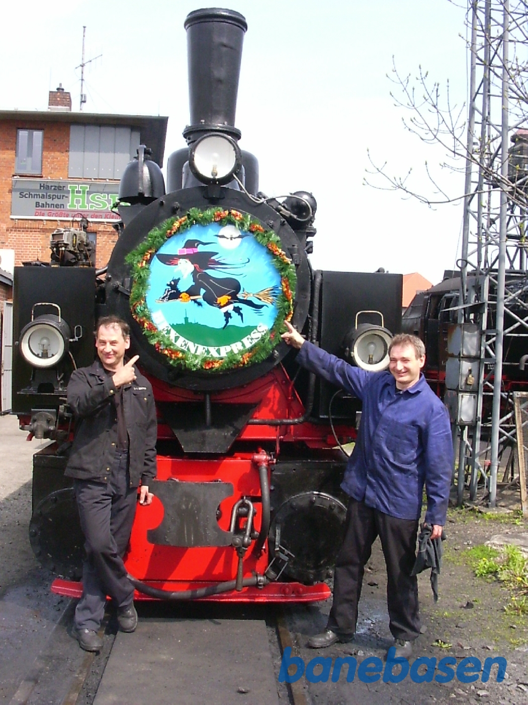 Motiv:Det runde skjold med heksen, der lige er monteret på lokomotivet