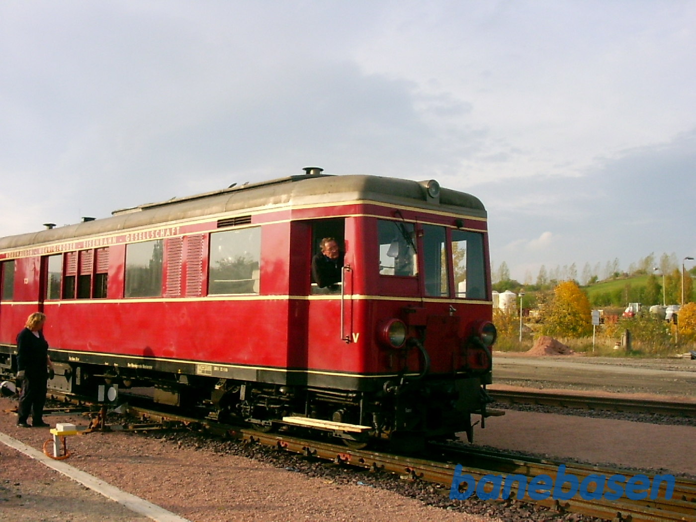 Motiv:Motorvognen er løbet om og toget holder ude på opstillingssporet