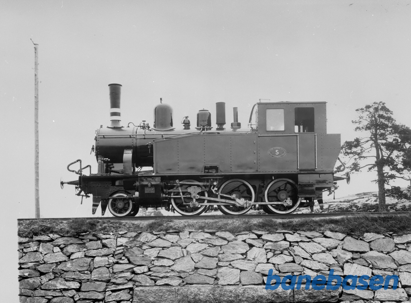 Motiv:Fabriksfoto af damplokomotiv nr 5 til Helsingør-Hornbæk-Gilleleje Jernbane