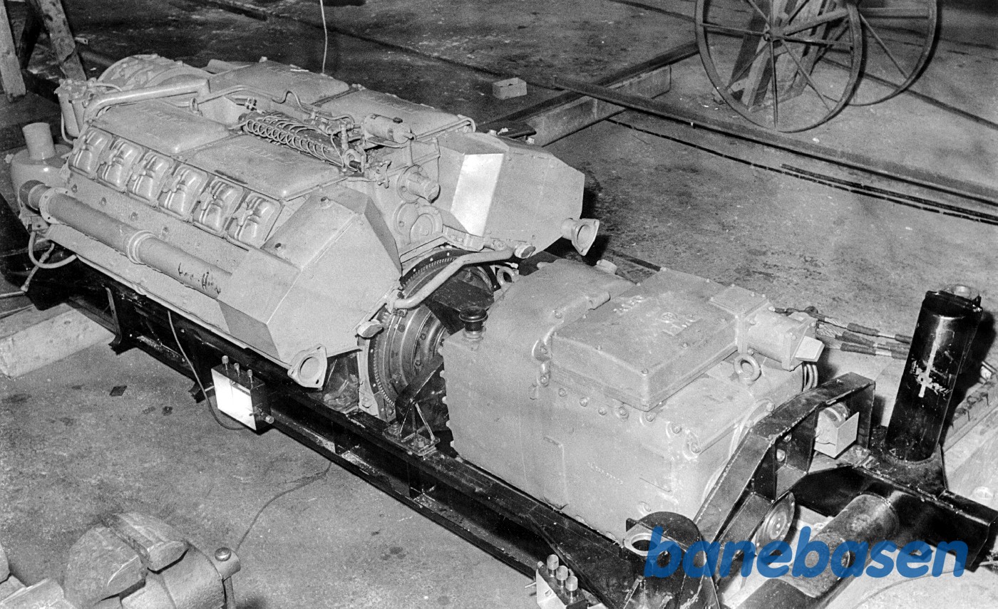 | Motiv: | Maskinanalæg til OHJ MO-vogn. Motor og gearkasse på særskilt ramme til ophæng under vognen |