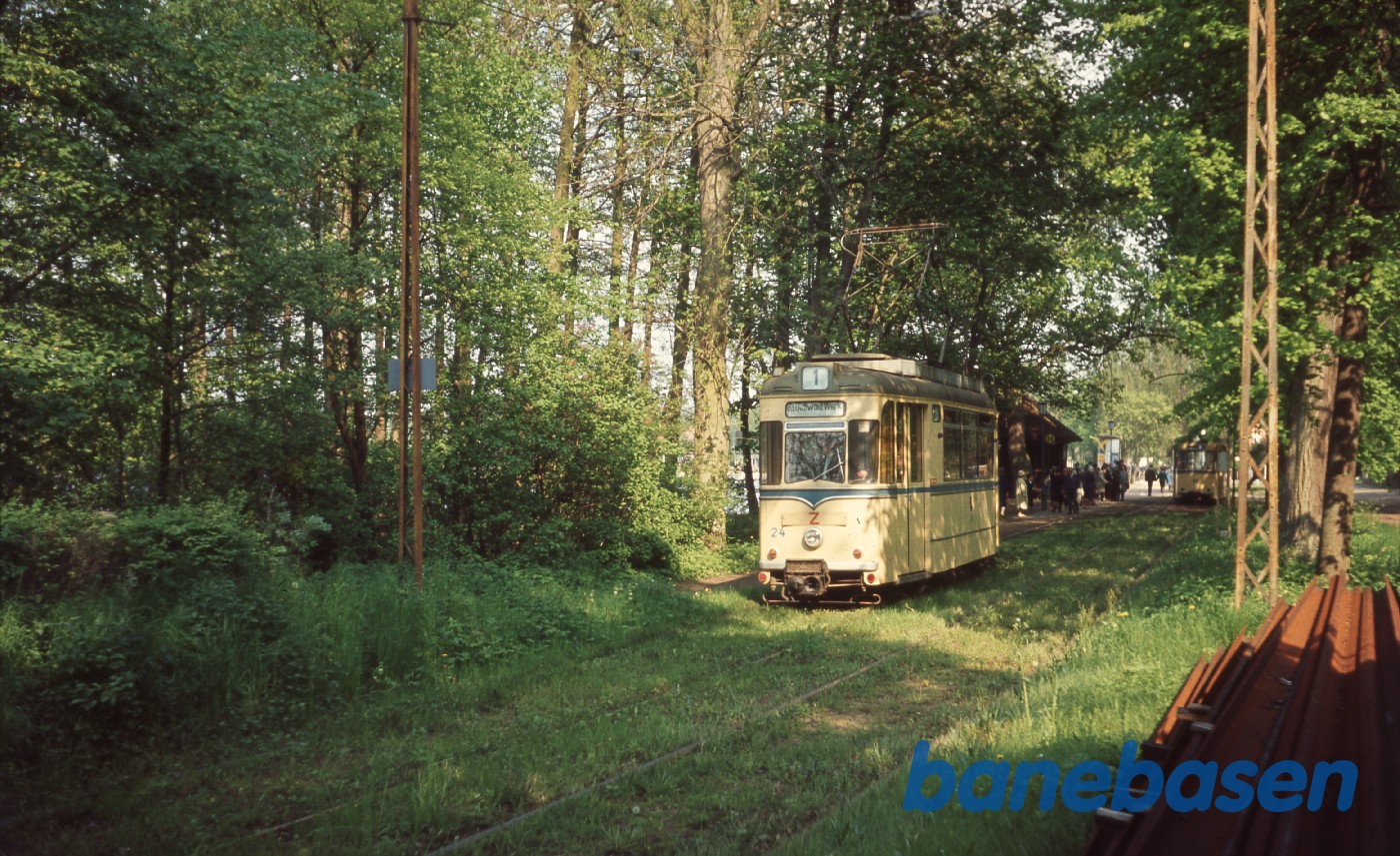 Sporvogn i skovbillede