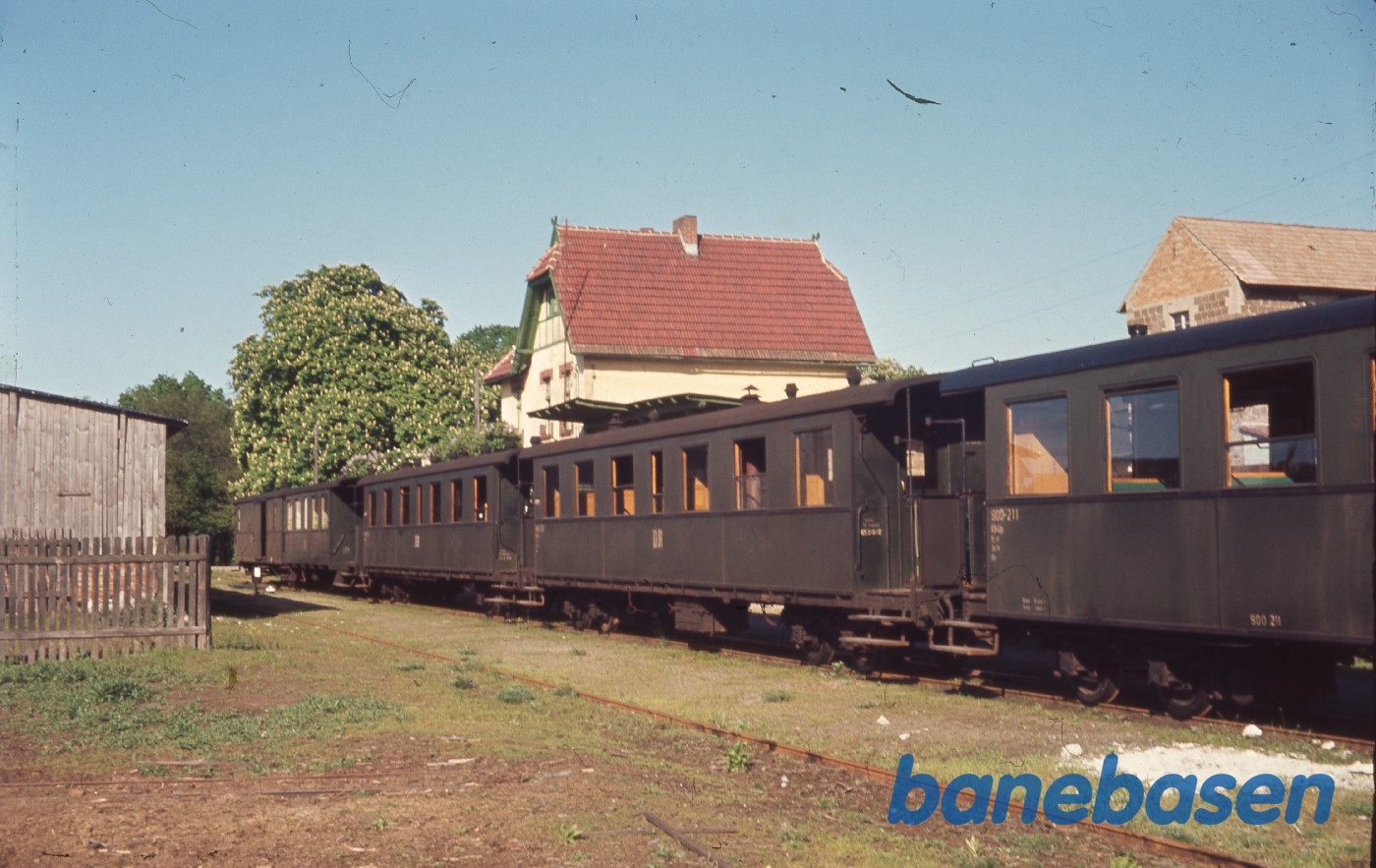 Motiv:Persontoget holder på landstation i bymæssig bebyggelse